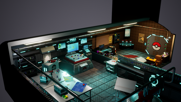 For this project, I re-created a room from an existing franchise, re-imagined and turned it into an isomeric scene. Working with PBR materials I hoped to create a vibrant Pokemon research lab. This scene is inspired by an FZD RPG Room techniques.